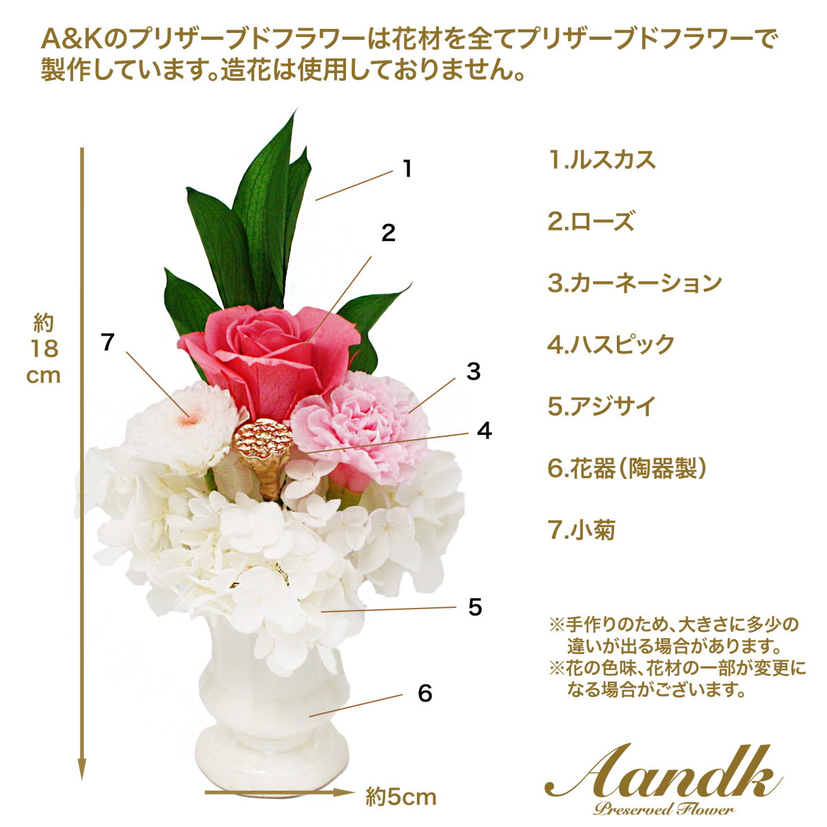 ※A&Kのプリザーブドフラワーは花材を全て自然素材で製作しています。造花は使用しておりません。(ハスピックも造花ではございません。)